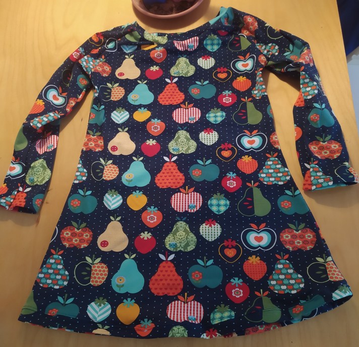 Ik liep tegen een super lief stofje aan. Daar moest ik een jurkje van maken.