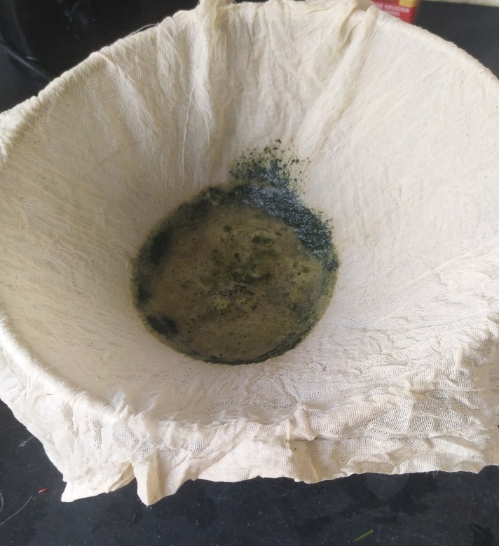 Als voorbereidend zeepwerk moest ik een brandnetel extract maken en een chlorofyl van de bladeren van de brandnetels. Daar was ik ongeveer 2 uur mee bezig. Maar, wat tof, verse planten in je zeep. Mooi!