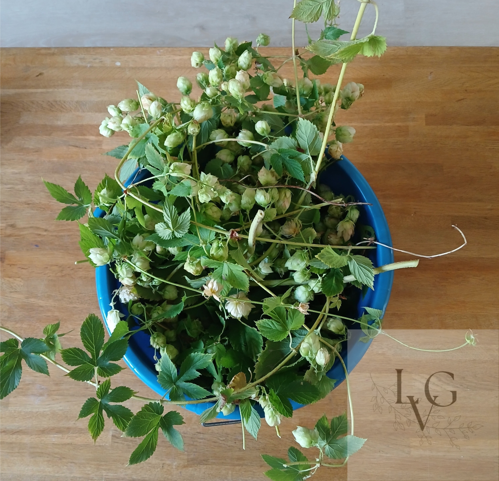 Alles uit de tuin. Alles straks gedroogd of tot moes gemaakt voor verdere verwerking in zeep of zalfjes. Helemaal leuk 😀