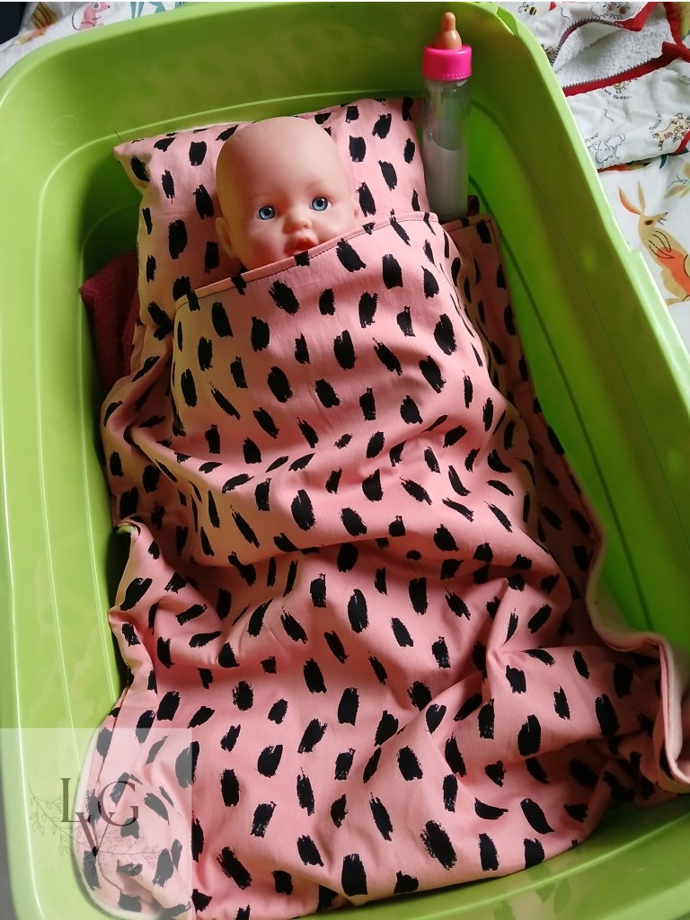 En toen werd Keet verliefd op haar pop Isabel. Daarvoor kreeg ik de vraag; mama, kun jij een dekentje en een kussen maken? Mijn antwoord was; ja natuurlijk! Leuk. Resultaat zie je hieronder. π