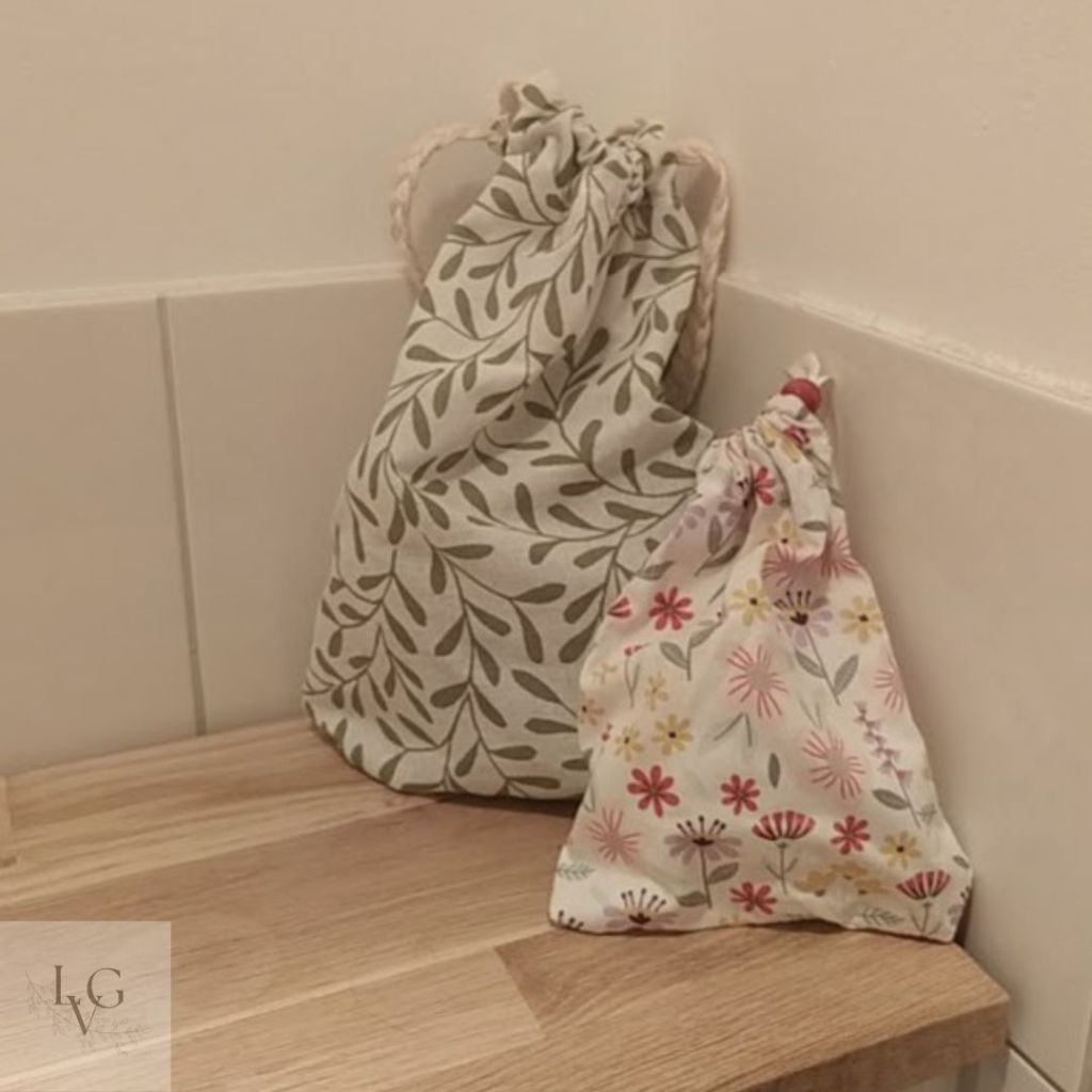 Voor mijn maandelijkse vrouwelijke ongemak heb ik inmiddels duurzame uitgaves gedaan. Ik kocht wasbaar maandverband en een menstruatie-cup. Aan de prijs, dat wel. Maar een menstruatie-cup gaat 10 jaar mee en die bewaar je dus. In de tussentijd geen afval. En wasbaar maandverband was je en kan je steeds weer opnieuw gebruiken. En weer geen afval. Alleen, ze kwamen in een saaie verpakking aan. Daar kan ik dus niet tegen. Dus ik maakte zakjes. Dat ziet er gewoon heel gezellig uit, en niet iedereen heeft meteen door dat daar maandverband in zit.