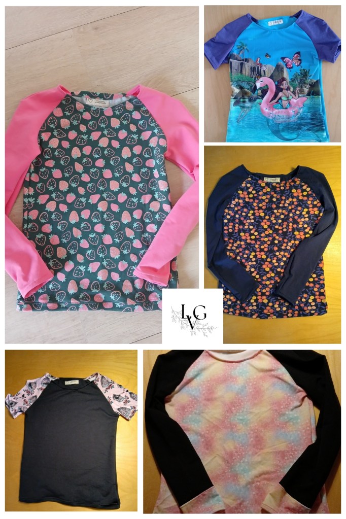 Alvast voor de lente vond ik het leuk oude reststofjes op te maken. En hoe kan dat beter dan via een raglan-shirt, waarbij de mouwen het shirt accentueren. Ik vroeg aan mijn dochter welke stofjes ze (opnieuw) wilde en maakte er uiteindelijk 5. Katoenen tricot gecombineerd met french terry. Alleen French Terry of alleen katoenen tricot. Helemaal leuk 😃