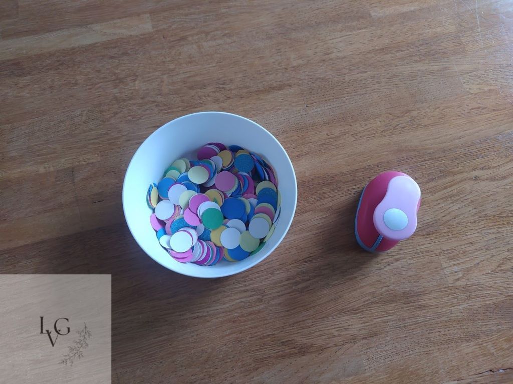 Ik kocht een pons voor een paar euro en ponste uit verschillend papier rondjes uit.