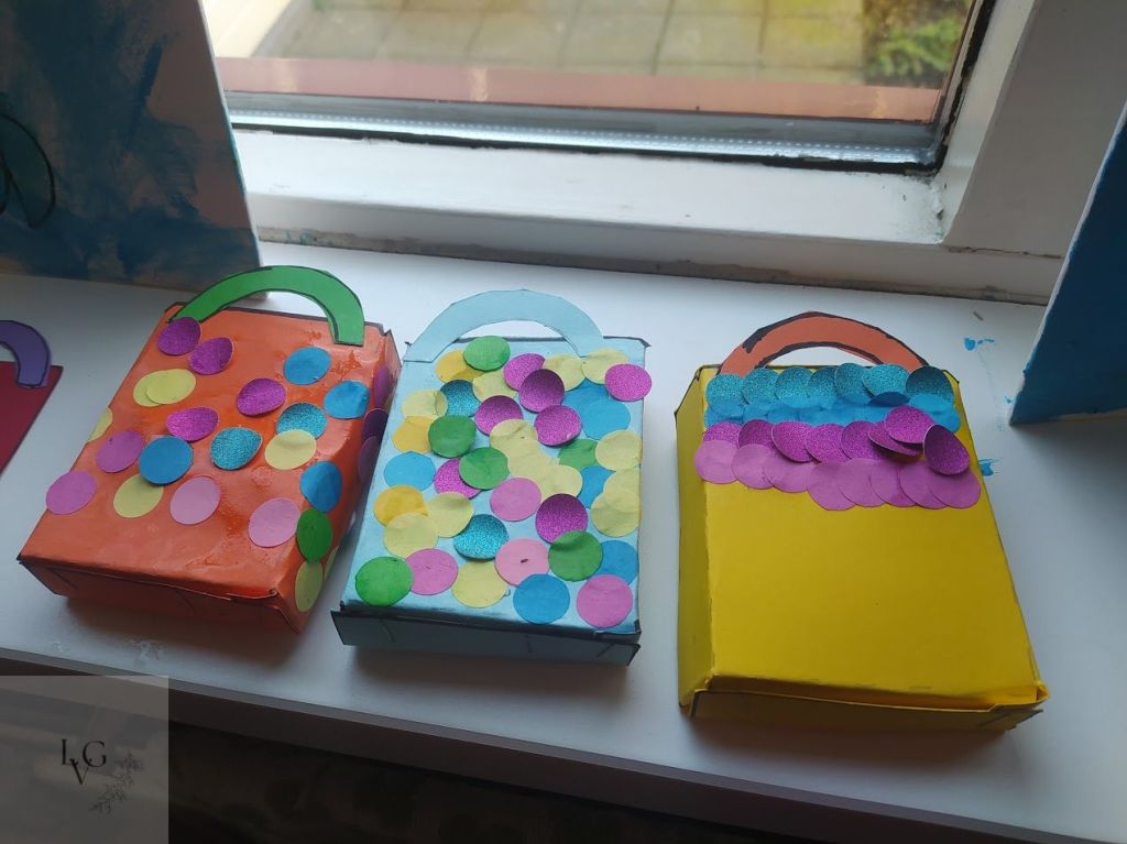 In het kader van de zeemeermin-verjaardag bedacht ik als onderdeel een schubbentasje maken. Ik vond online een sjabloon van een papieren tasje en nam die over op gekleurd papier. Vervolgens knipten we die uit en kochten voor weinig geld een pons. Daarmee haalden we kleine rondjes uit papier. Die plakten we vervolgens op het tasje over elkaar en later plakten we het tasje in elkaar. Aan het einde van de verjaardag hadden we zelfgemaakte schubbentasjes waar kinderen heel blij mee waren en waar nog een snoepje in kon ook. Lekker leerzaam en niet duur.