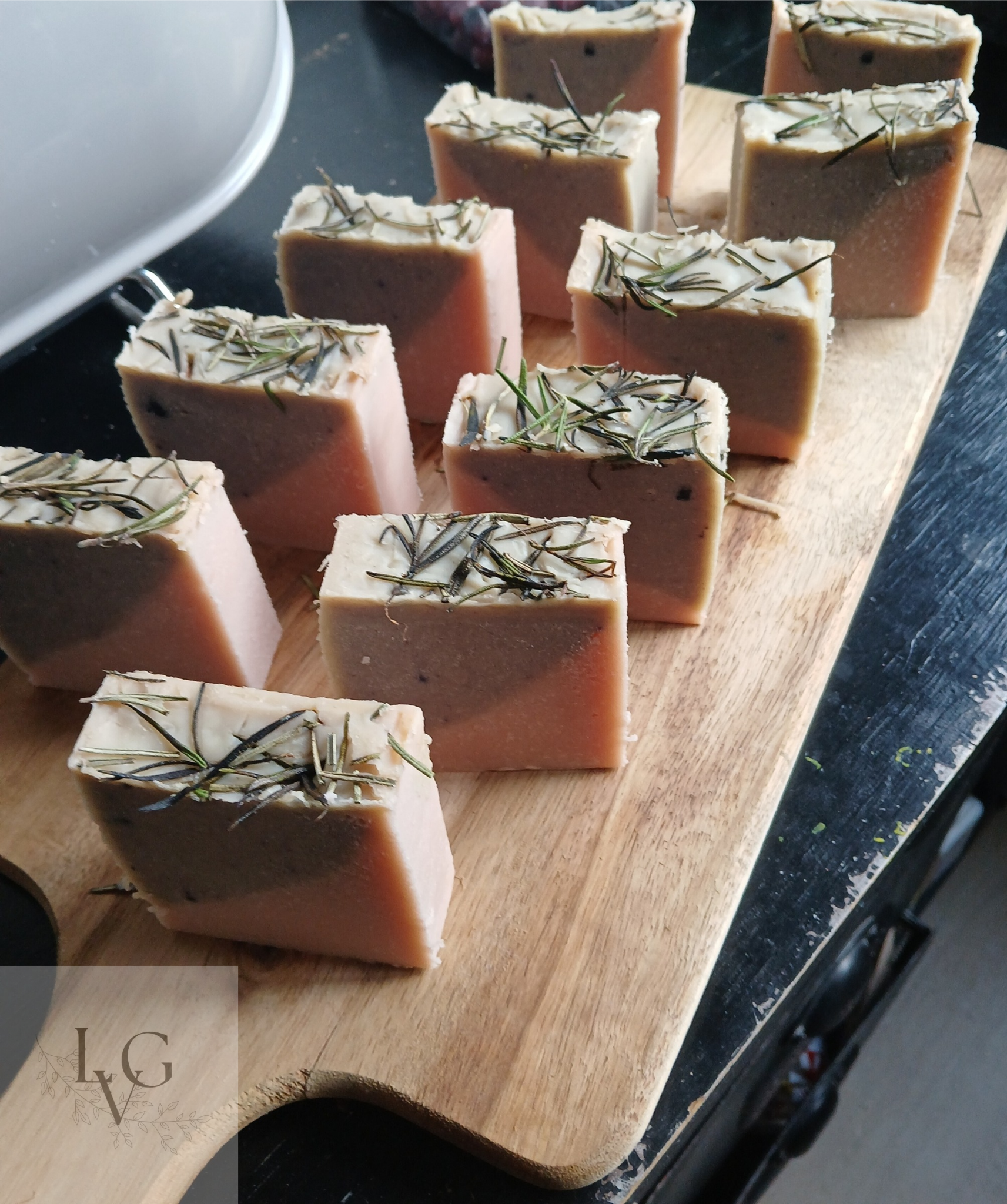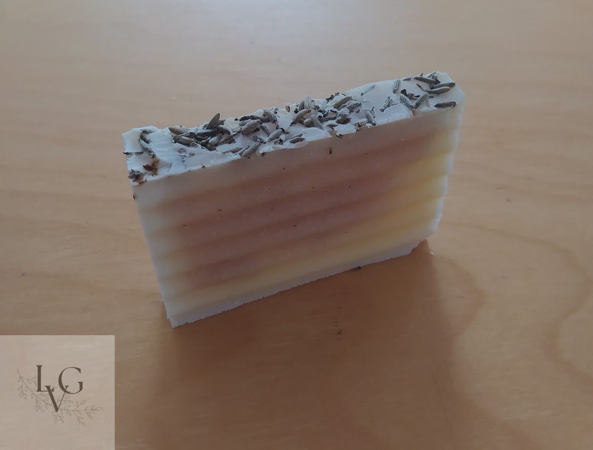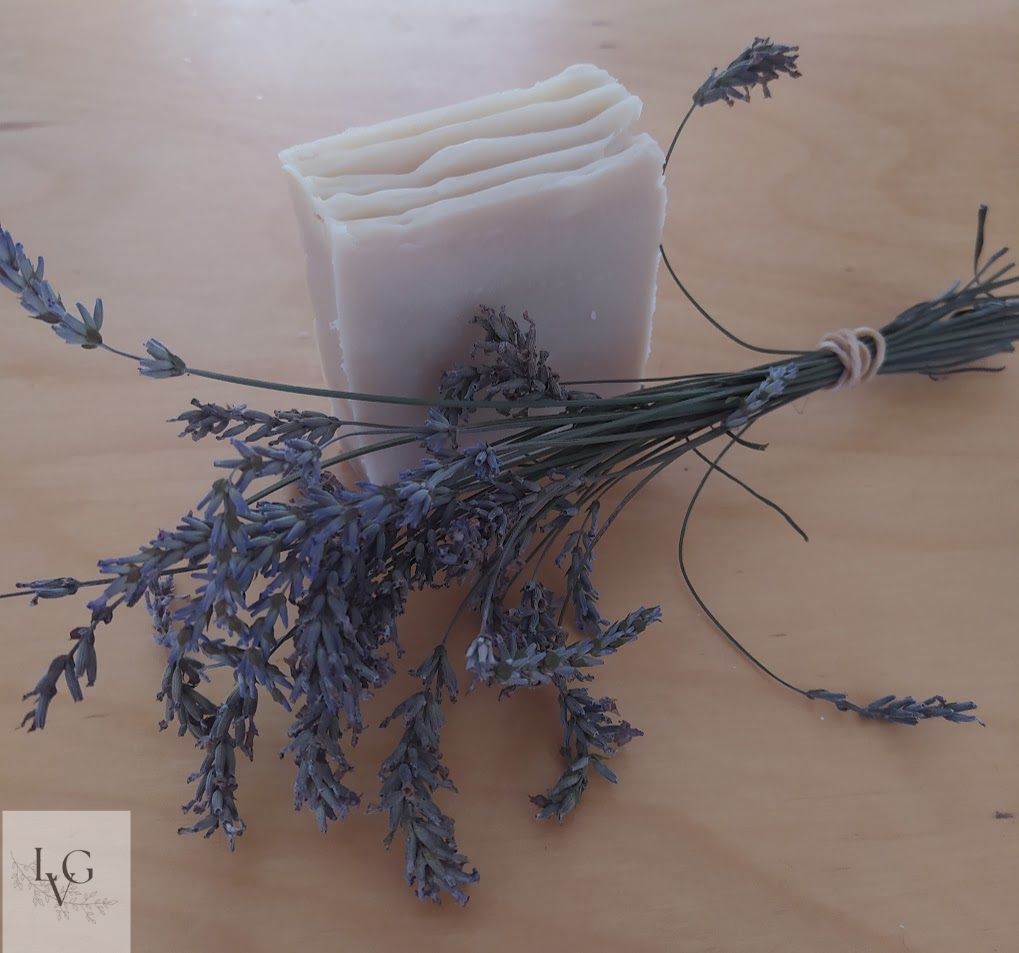 Zeep met verse lavendelbloemetjes uit de tuin.